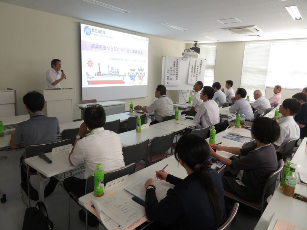 令和7年9月5日(金)に令和7年度大島商船高等専門学校地域連携交流会総会が開催されました。総会では冒頭に川口勉会長と本校藤本隆士校長の挨拶がありました。その後、川口会長が議長となり令和6年度の事業報告、決算報告、監査報告、令和7年度の事業計画(案)及び予算(案)の議事について協議が行われ、滞りなく承認されました。