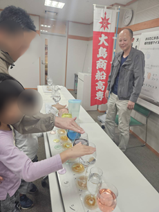 令和7年11月9日(日)、岩国市が主催する「青少年のための科学の祭典 2025 in 岩国」にて、本校の電子機械工学科 笹岡秀紀 教授、長谷川耕平 准教授、専攻科生1名、本科生4名が参加し、グラスに入った水量で音階を調整するグラスハープの科学実験コンテンツ「あなたはもってる?グラスハープで絶対音感チェック」を実施しました。