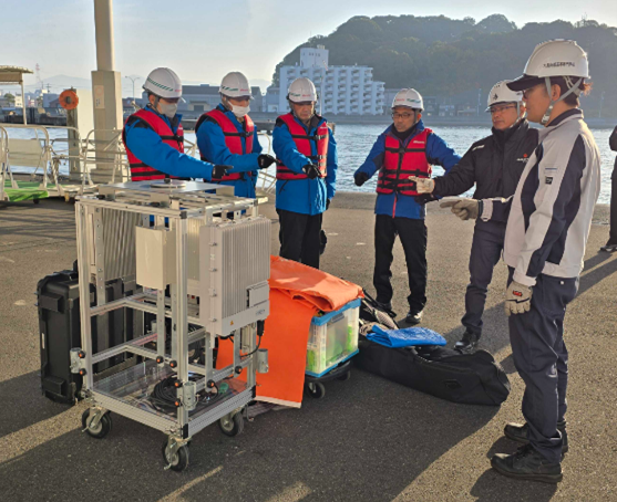 新型衛星機器(スターリンク)を活用した船上基地局の設営・固縛方法を確認・習得し、海上での