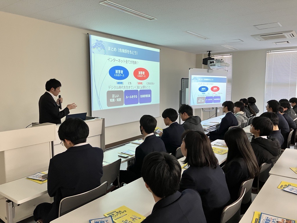 令和7年12月22日(月)LHRの時間を利用して、第2学年の学生を対象とした情報セキュリティ講演会を開催し、約120名の学生が受講しました。