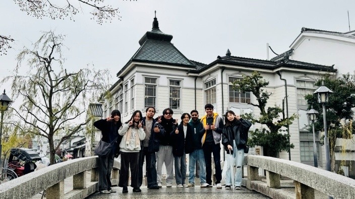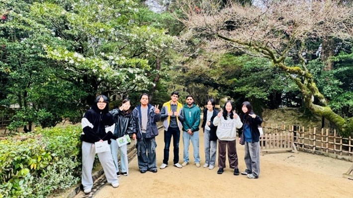 令和7年12月20日・21日、本校留学生及び日本人チューター学生の8名と国際交流室の教員2名で、岡山県へ見学旅行に行きました。この旅行は、日本の文化や景色を体験し日本事情を理解してもらうとともに、留学生と日本人学生の親睦を深めることを目的として実施しています。