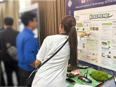 本大会には、昨年10月に開催された全国高等専門学校プログラミングコンテストの課題部門と競技部門で優秀な成績を残したチームが招待され、本校からは課題部門出場チーム【蛭子莉愛さん、藤井凛さん、山田琉衣さん】が『KOKEMEME』というタイトルで出場しました。