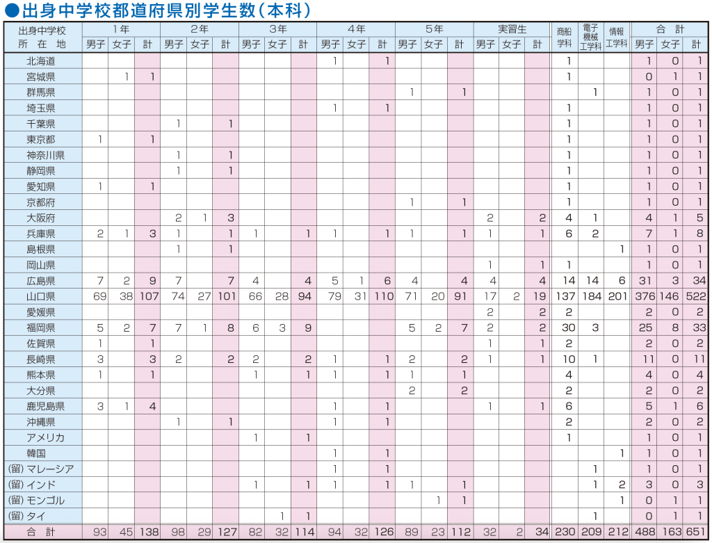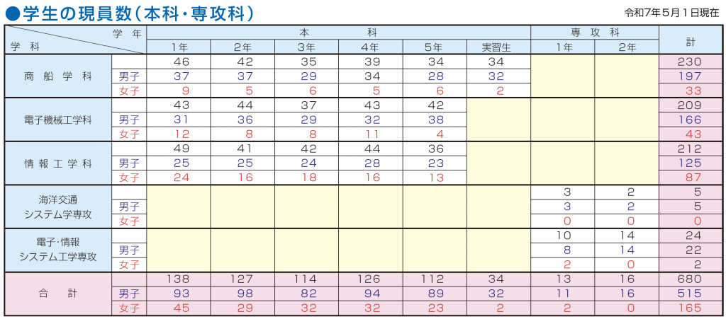 | 商船学科 | 電子機械工学科 | 情報工学科 | |||